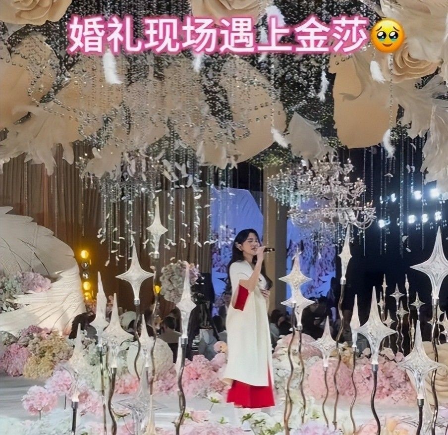 而是42岁女歌手金莎在江苏某场普通人婚礼上商演的真实场景再现。
