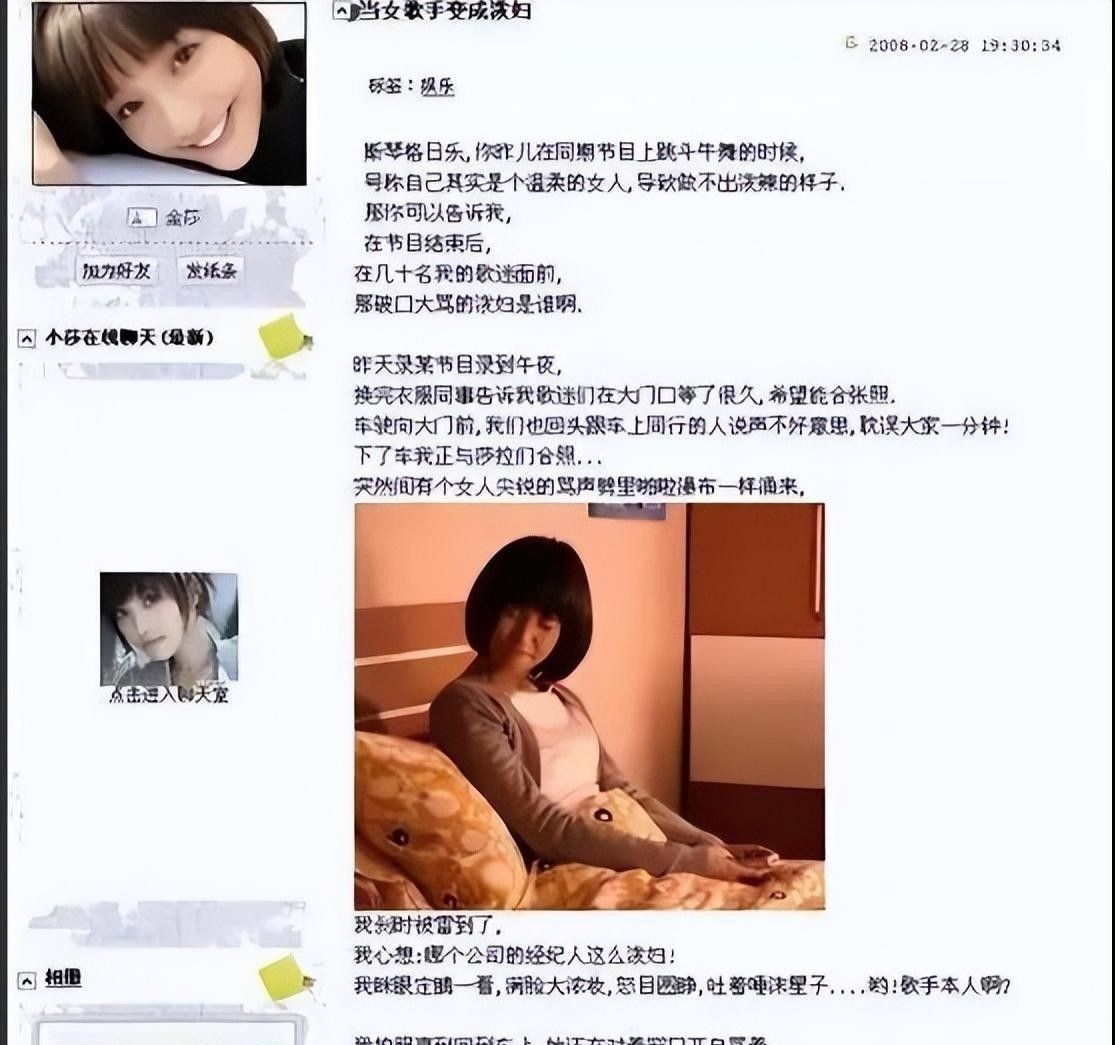 金莎随后在新浪博客发表题为《当女歌手变成泼妇》的文章。