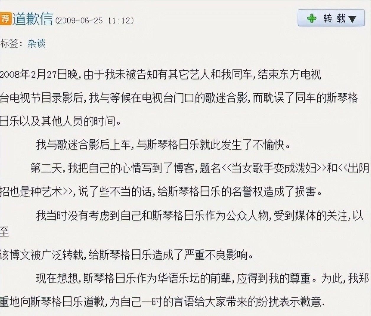 直至2009年二审维持原判后,才勉强发布道歉声明。