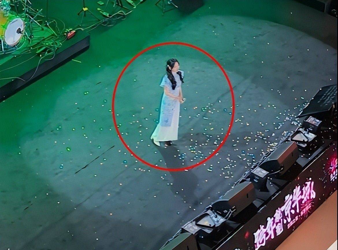 而金莎却穿着单薄旗袍,独自站在扬州京华城露天舞台中央开唱。